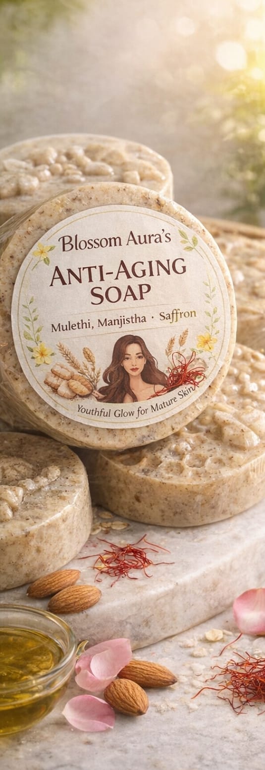 Prepared in small batches under clean and hygienic conditions, each soap maintains its purity, freshness, and effectiveness. Staying true to Blossom Aura’s philosophy, it is free from harsh chemicals and unnecessary additives, focusing only on gentle and beneficial natural ingredients.
