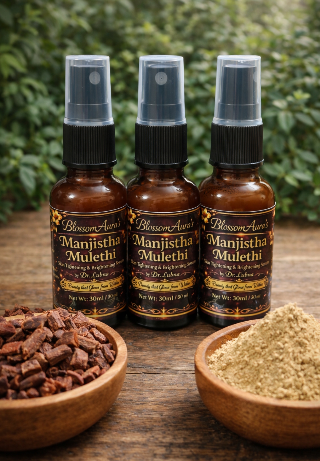 Manjistha is traditionally known for its skin-purifying and brightening properties, helping to support a clearer and more balanced complexion. Mulethi (licorice) is valued for its soothing and skin-evening benefits, helping reduce the appearance of pigmentation and leaving the skin looking more refined and radiant.